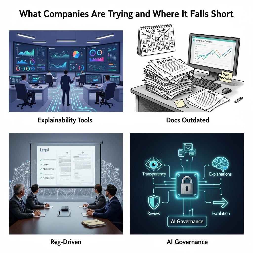 The real gap? Alignment. Transparency data, explanation outputs, review authority, and escalation pathways must operate under formal AI governance guardrails. When they function independently, they create visibility without control.