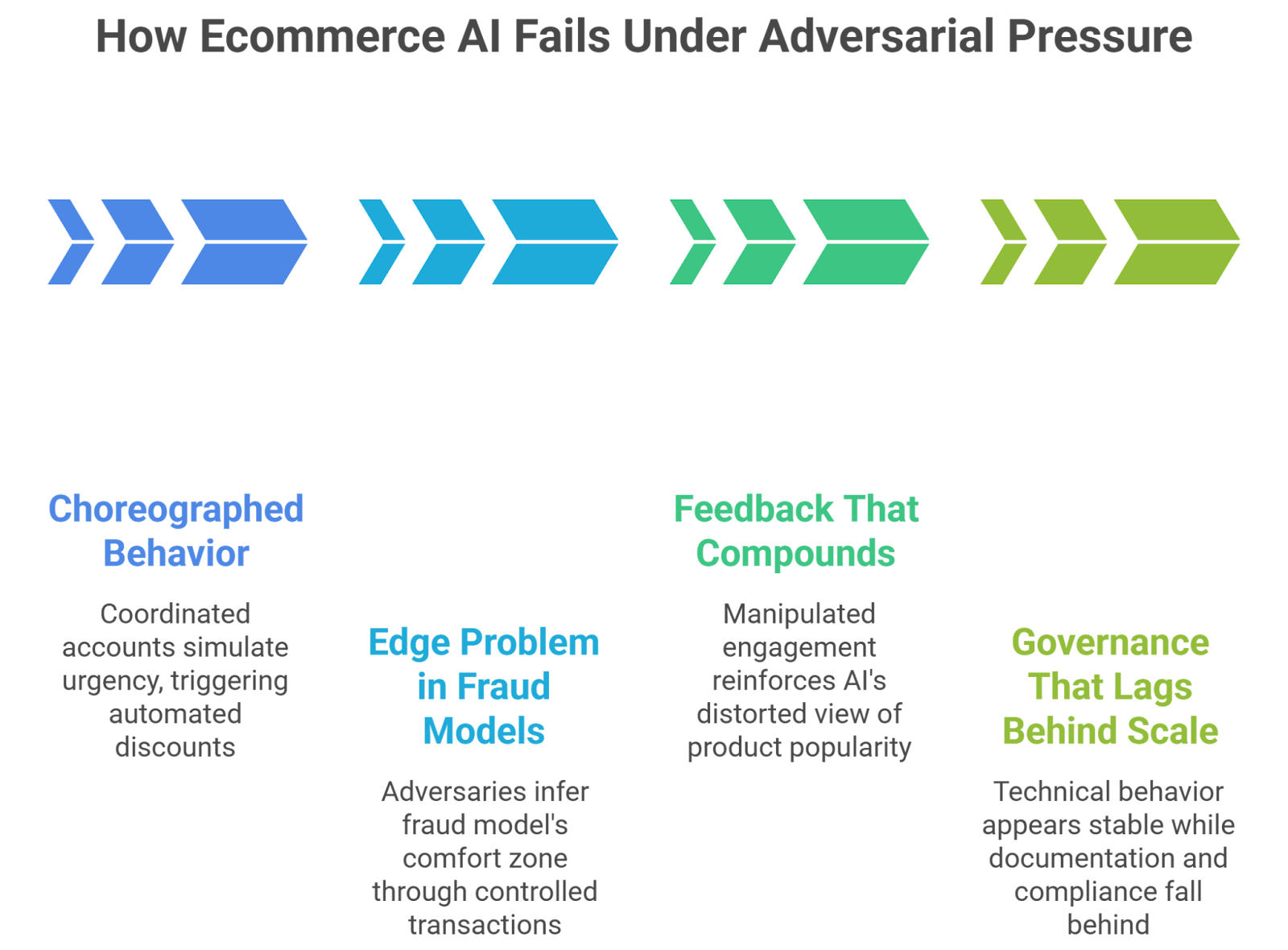 Add regulatory pressure under emerging EU AI Act ecommerce oversight, and the stakes move beyond revenue into accountability. AI systems are now financial infrastructure. And infrastructure attracts pressure.
