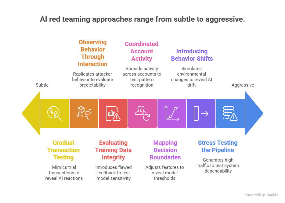 Red teams replicate this behavior in controlled testing. A sequence of similar payments is submitted with small variations in device information, purchase value, or merchant category. Over time, the system’s responses begin to reveal patterns.